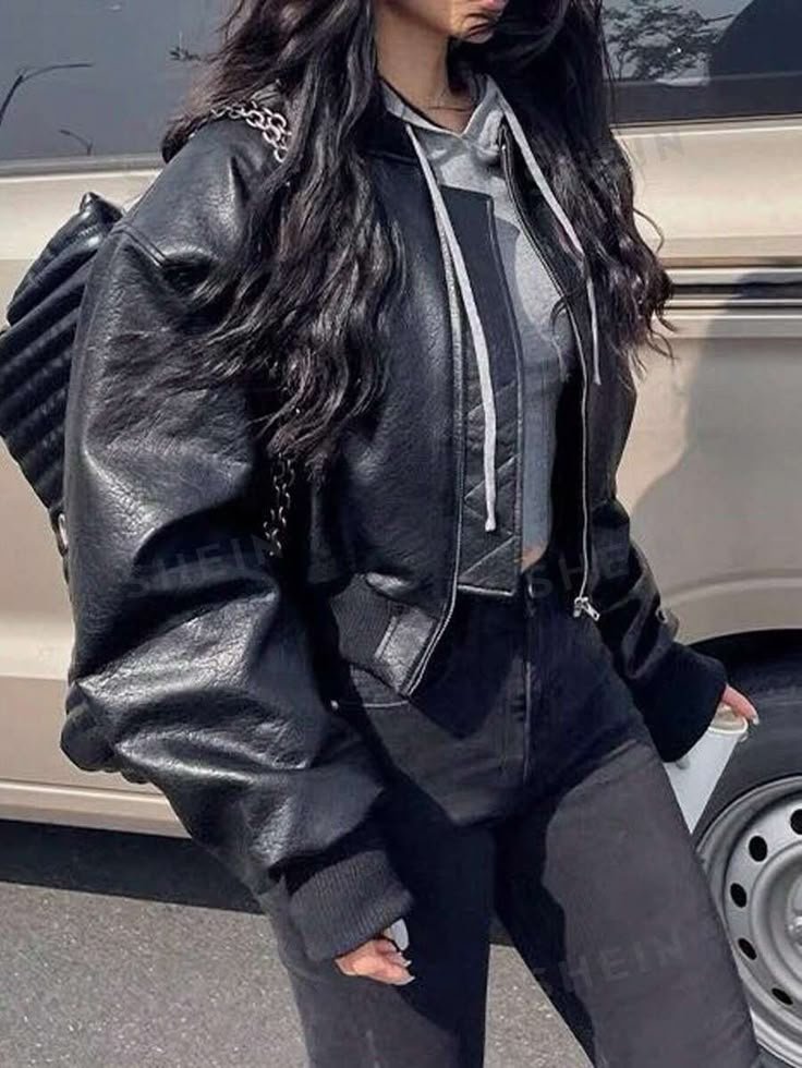 Think oversized biker jackets with studs, patches, or even graffiti prints.