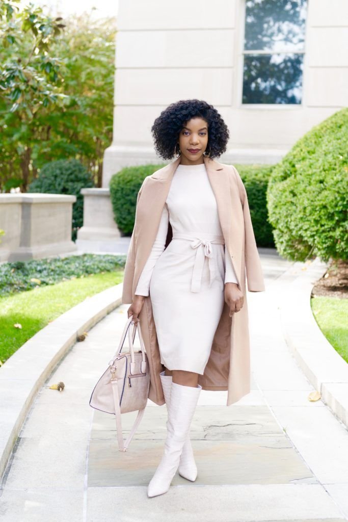 Neutrals don’t have to be boring—especially when styled head-to-toe. Think beige pants, a cream bodysuit, and a camel trench.