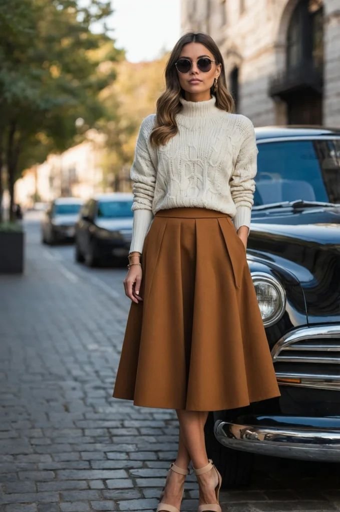 15. Sweater + Midi Skirt Combo