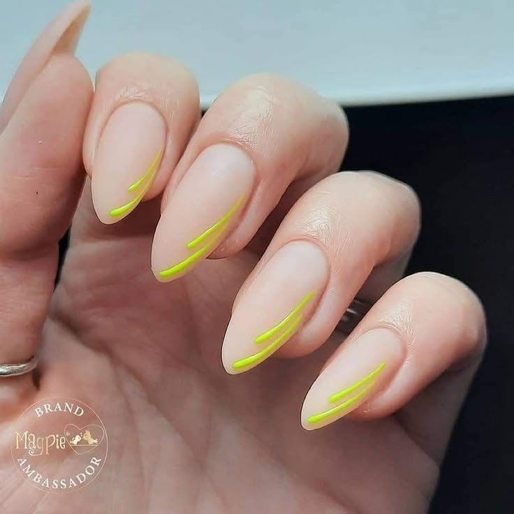 For the color-shy, neon tips over a nude base offer a playful compromise. Try neon coral or lime green on short, square nails.