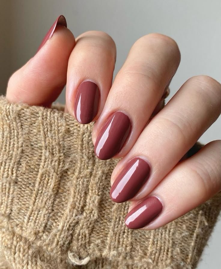 Mauve nudes strike the perfect balance between pink and brown. They’re especially flattering on medium to olive skin tones. Try Olive & June’s “SJM” for a creamy, opaque finish.