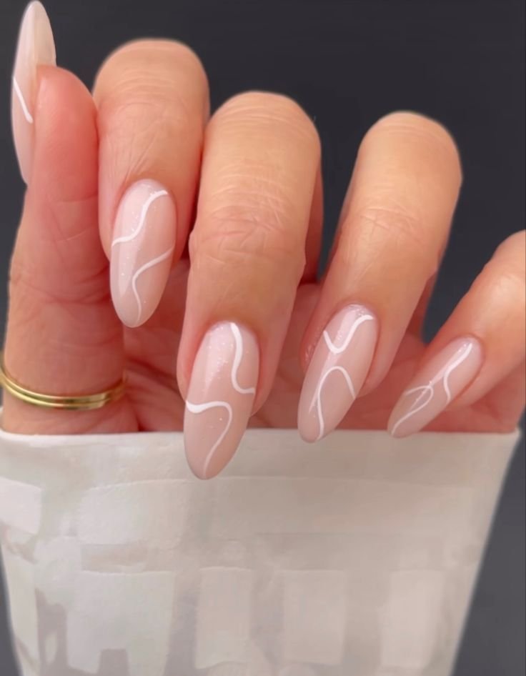 Channel your inner artist with freehand brushstrokes in black or white over a nude base. Think Pollock-inspired splatters or wavy lines.