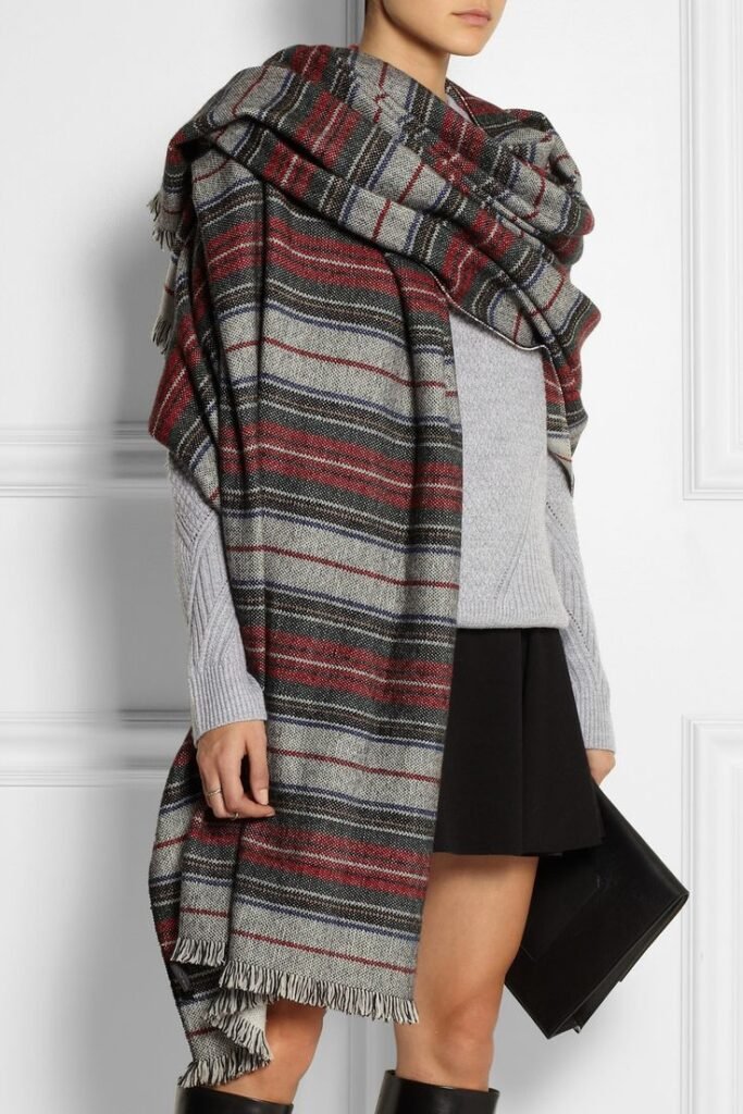Look for plaid patterns, fringe detailing, or even knit hood-scarf hybrids.