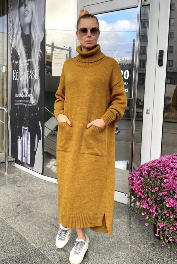 Knit dresses are both flattering and cozy. Look for ones with ribbed detailing, turtleneck tops, or side slits for a little edge. They work well with long coats, knee-high boots, or even layered under vests.