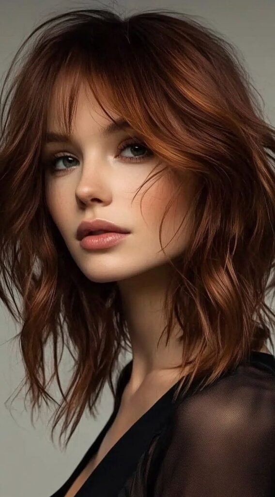 A shag cut adds effortless texture and movement. This hairstyle suits straight and wavy hair types alike.