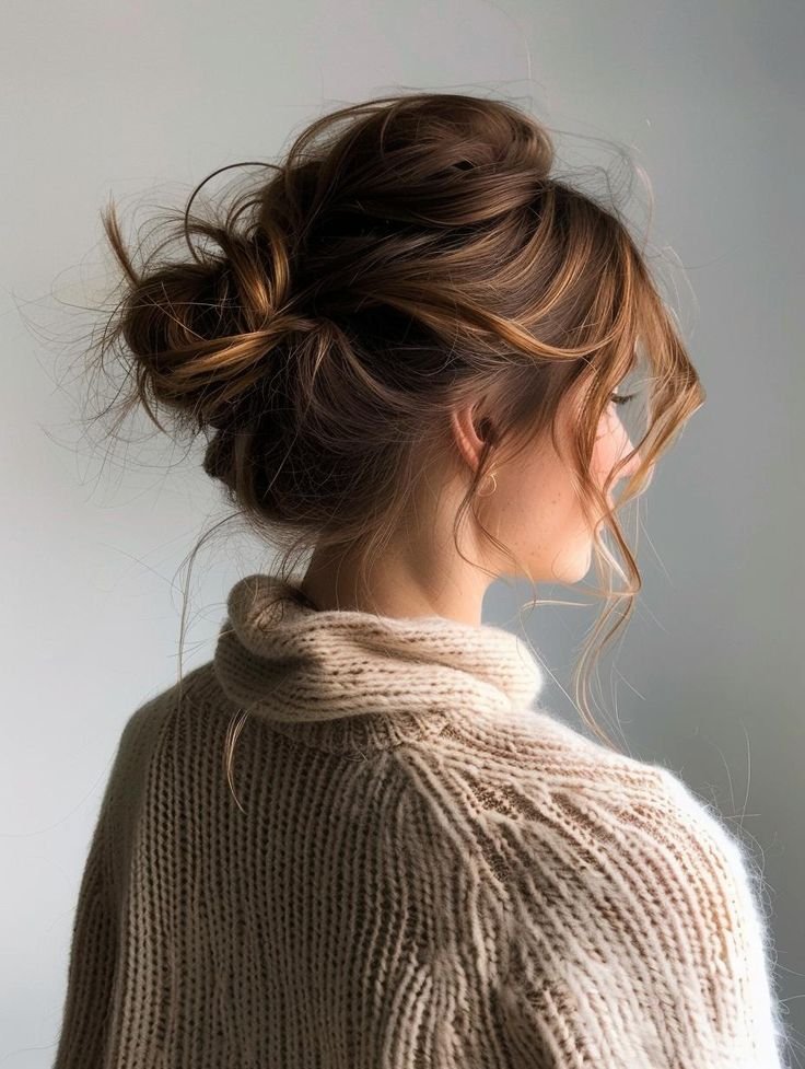 The low messy bun is your best friend. It looks polished yet laid-back—perfect for pumpkin picking or a casual dinner.