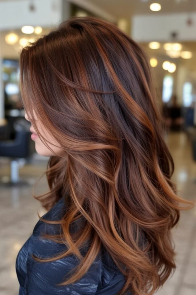 Try rich caramel, copper, auburn, or honey highlights. These warm shades look incredible in natural light and add instant fall flavor.