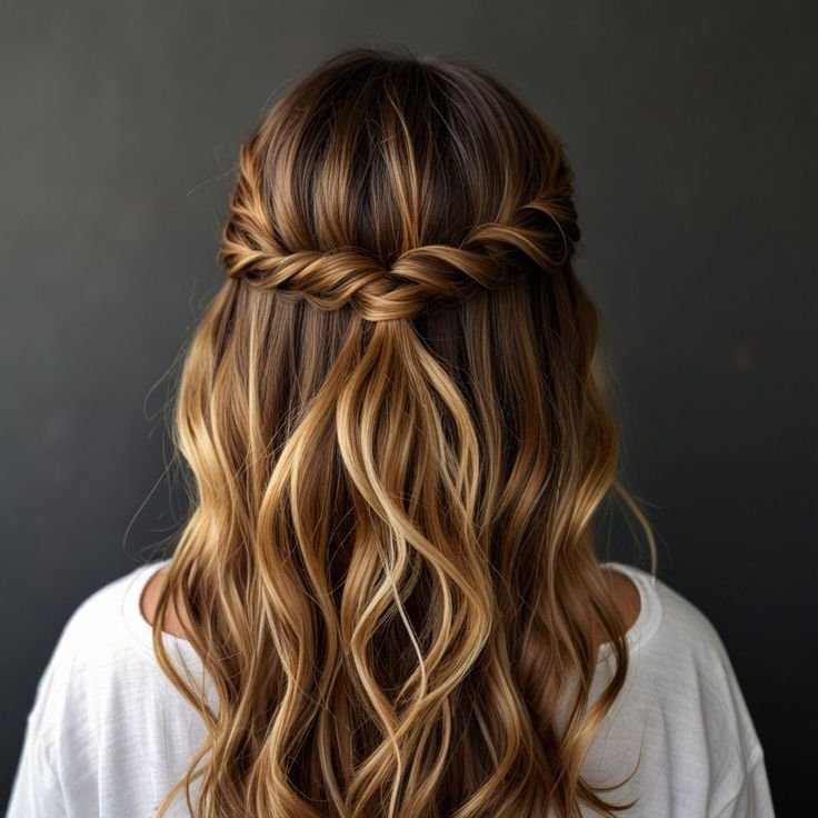 Twist two sections from the front and pin them at the back for an easy half-updo. This look is romantic and perfect for transitional weather.