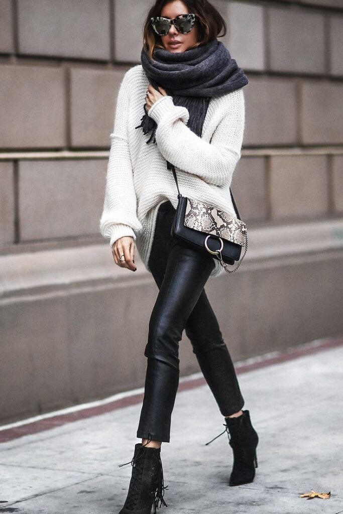 9. Leather Pants + Oversized Sweater