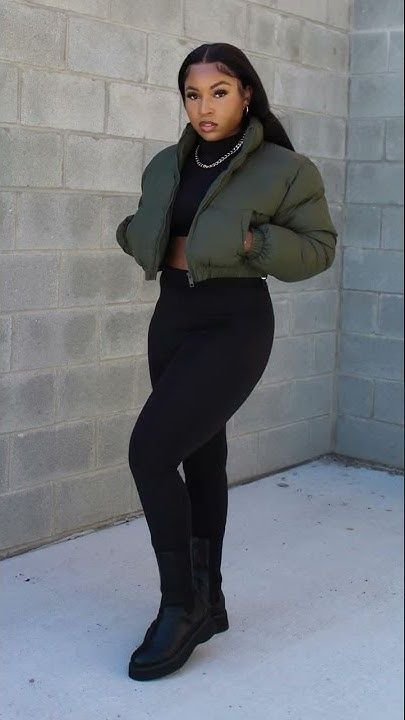A cropped puffer coat over a body-hugging knit midi dress creates a flattering shape while keeping you warm. Add chunky boots or sleek sneakers.