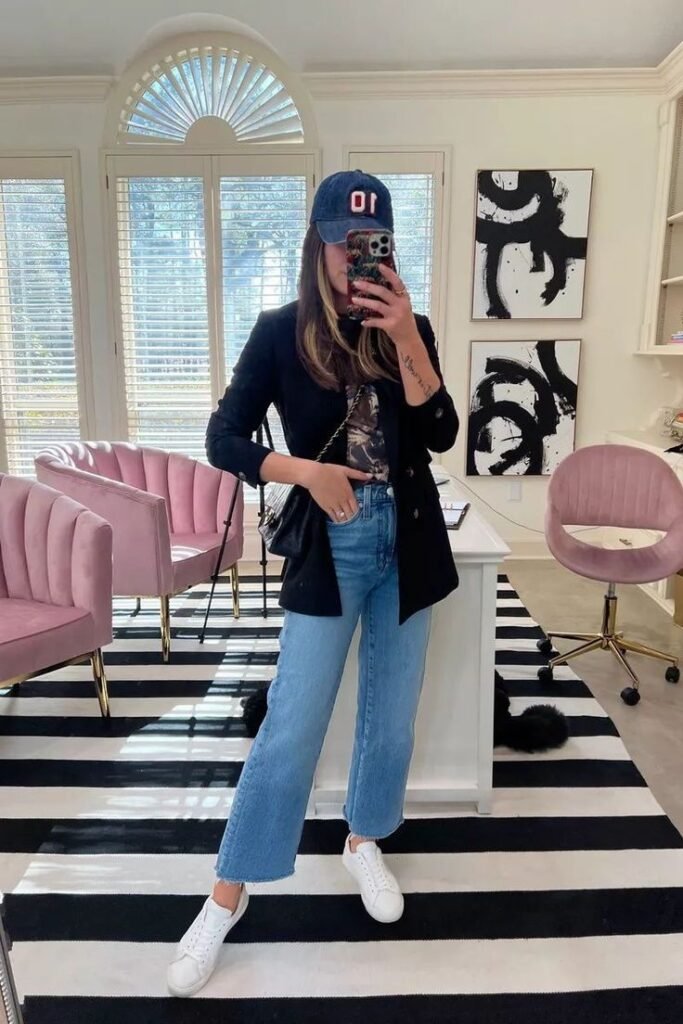 You can even swap jeans for a mini skirt if the temps are still on the warmer side.