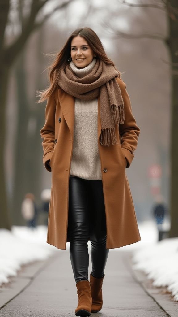 Faux leather pants instantly elevate any outfit. Pair them with a chunky oversized sweater in a soft tone like oatmeal, sage, or blush.