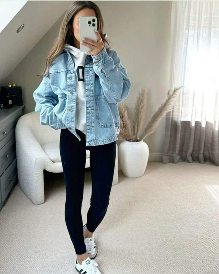 11. Denim Jacket Over Hoodie + Leggings