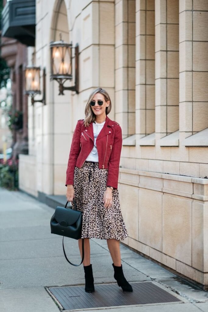 10. Midi Skirt + Ankle Boots + Moto Jacket