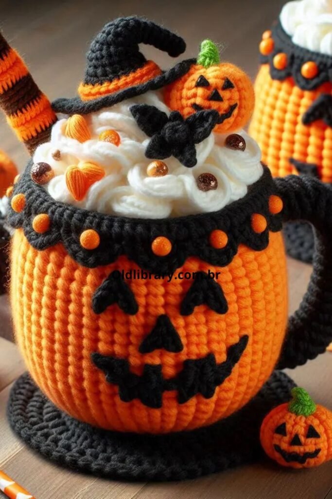 Crochet cup cozies are quick projects that make great gifts, too. Try designs like jack-o’-lantern faces, bats, or black cats. Not only are they adorable, but they’re also practical.