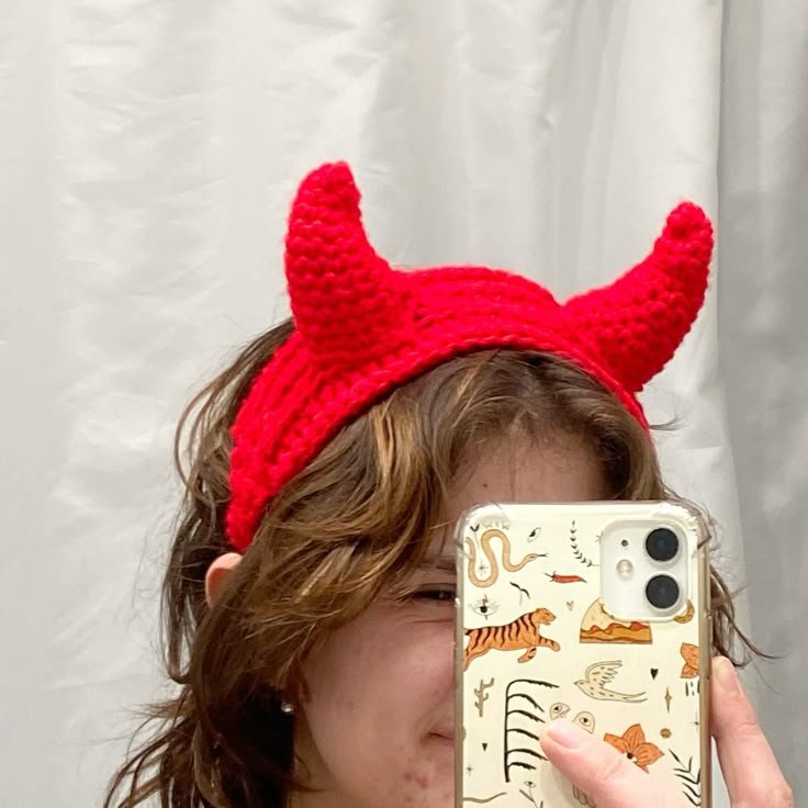 A crochet headband with little white fangs stitched into a red “mouth” band makes for a quirky Halloween accessory. Pair it with a cape or wear it solo for a low-key costume vibe.