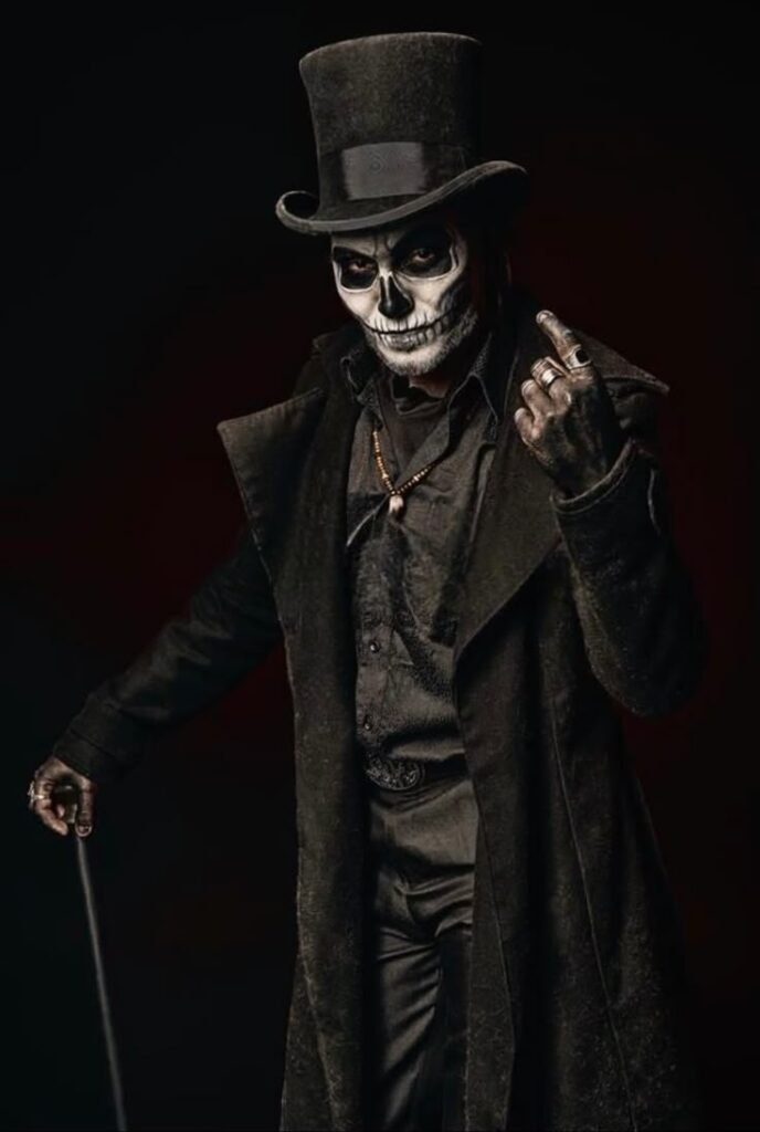 How do you make bones look classy? Go with a black suit and skeleton makeup.