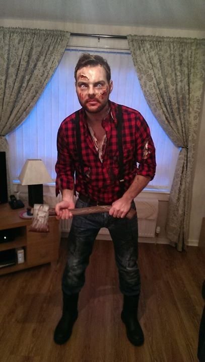 Half-human, half-wolf. Wear shredded flannel, claw gloves, and add makeup to show the change happening.