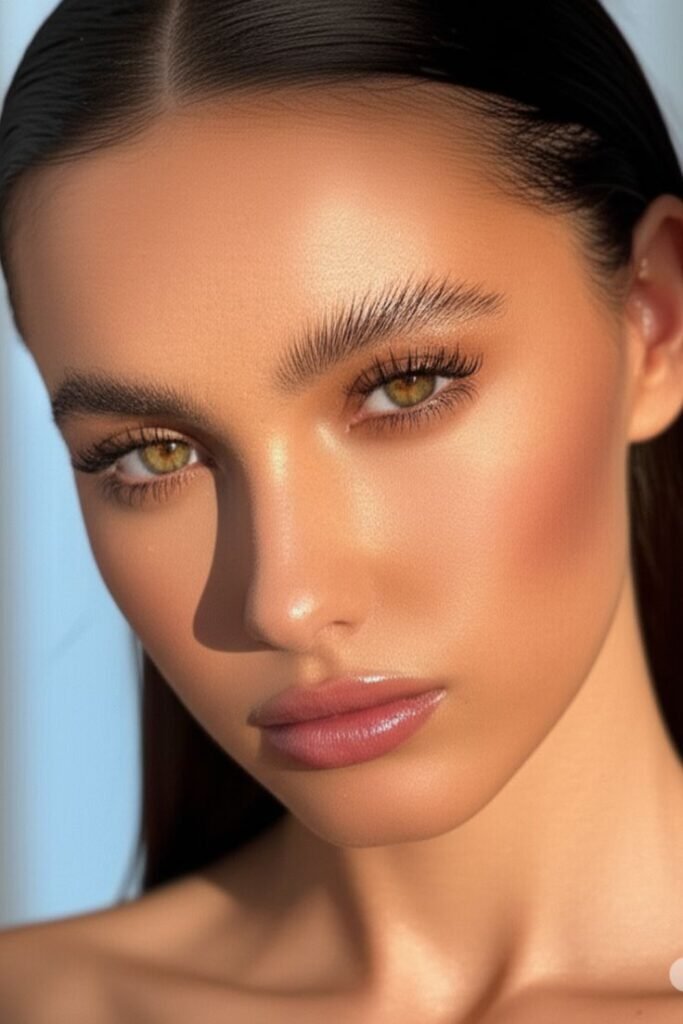 Sun-kissed skin never goes out of style. Use a warm bronzer to sculpt and warm up your face—apply it to the forehead, cheekbones, and jawline. Pair it with golden highlighter and earthy tones on the eyes for that radiant, summer-all-year vibe.
