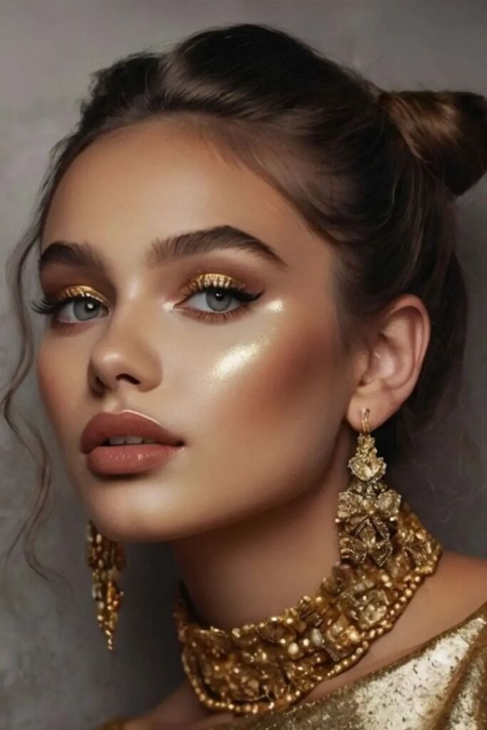 Try neutral-toned glitters or pressed pigment palettes. The trick is to balance it—use glitter in one area only and keep the rest matte or minimal.