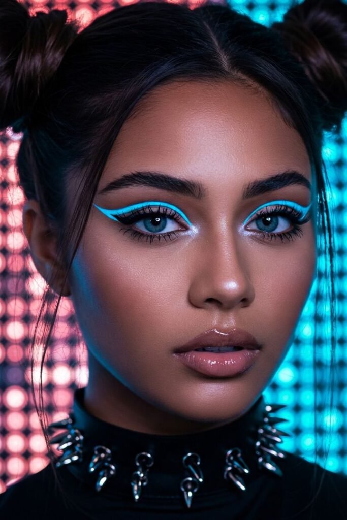 Want a bold but not overwhelming look? Add a tiny flick of neon eyeliner—like pink, lime, or turquoise—on the outer corner or lower lash line. It adds instant edge to your makeup without requiring a full face redo.