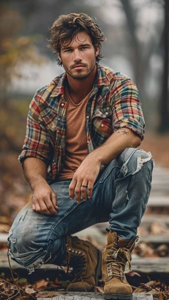 Fall outfits are all about layering. Start with a henley shirt or turtleneck, layer with a flannel, and top it off with a wool coat.