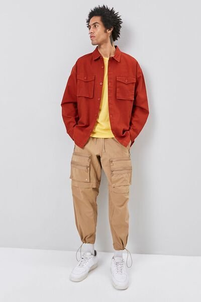 Try a utility jacket, thermal tee, and durable cargo pants.