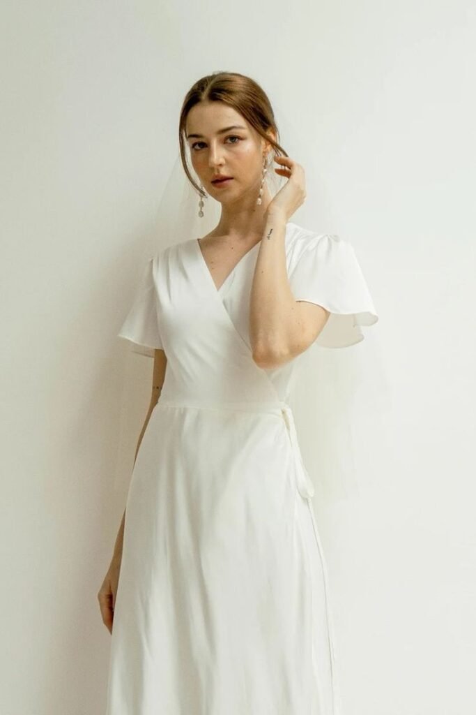 Wrap wedding dresses are flattering, comfortable, and chic. The adjustable fit suits different body types, and the shape adds natural movement.