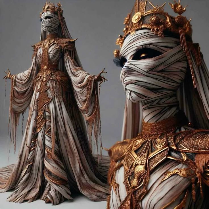 The Glam Mummy Queen is your go-to. Combine shimmering fabric wraps with gold accents and metallic makeup. Think Cleopatra meets the afterlife. You can wear a gold belt, statement jewelry, and heels to elevate the look.