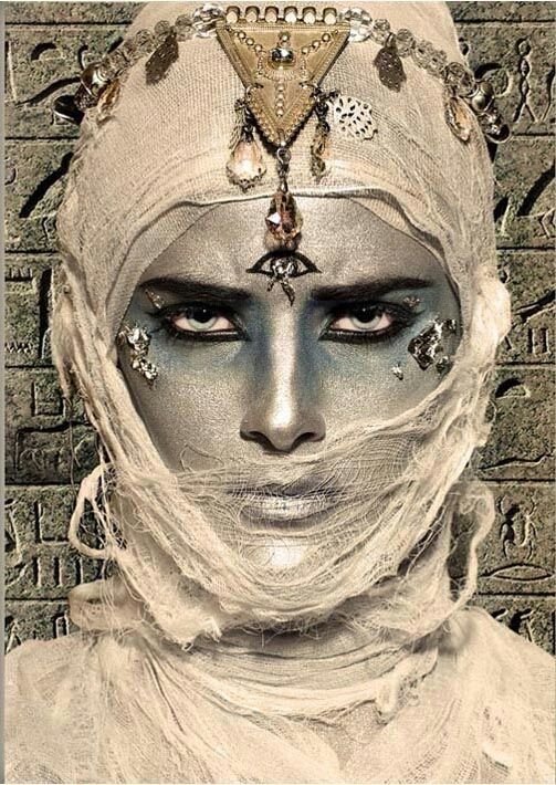 Dress in a mummy costume with regal Egyptian details—think gold cuffs, a striped nemes headdress, or a royal staff. Keep the wrap traditional but elevate it with bold accessories and confident posture.