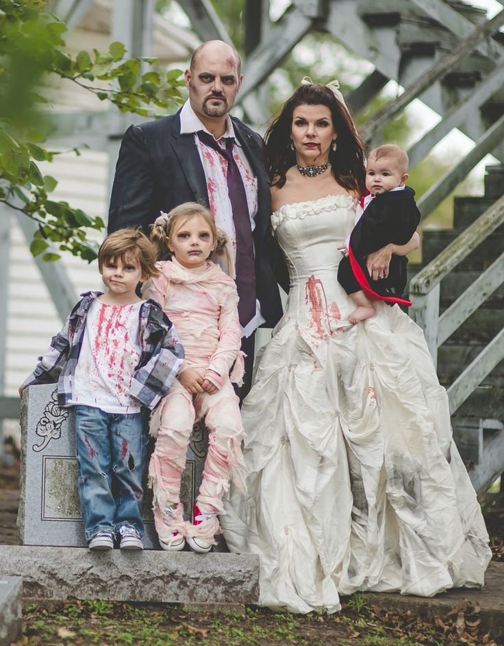 Smudge makeup for that “just woke up from the grave” look. Bonus points if you hold hands and move in sync—super eerie and fun.