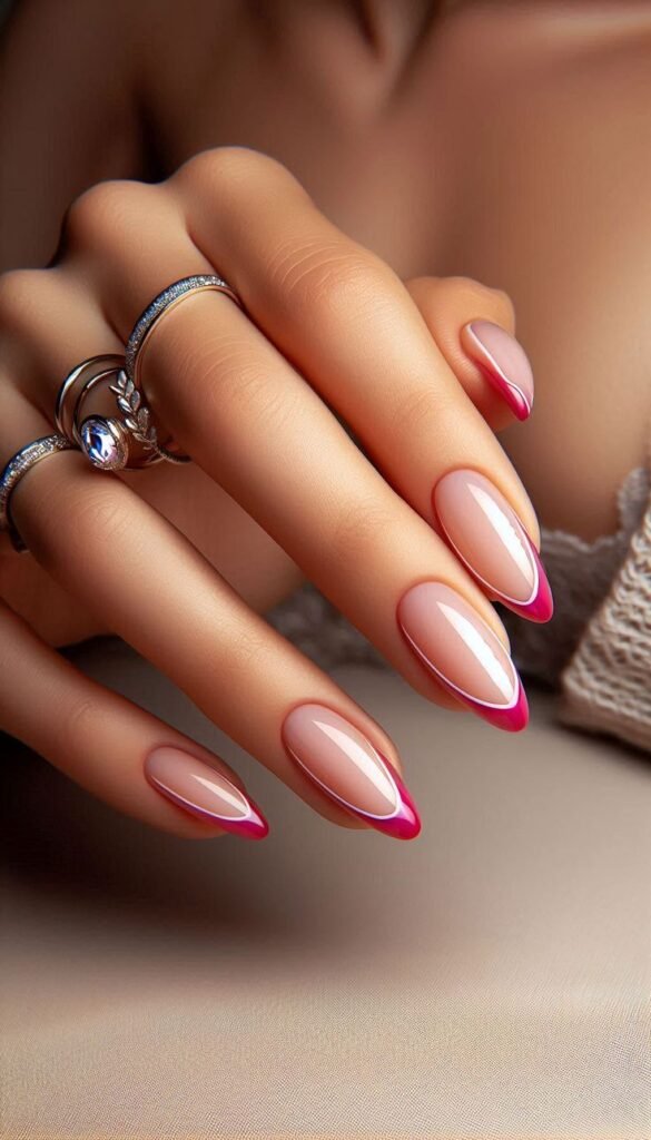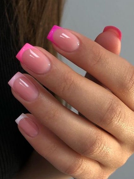 Use a nude or clear base and add vibrant pink tips instead of the traditional white. This keeps things fresh and trendy.