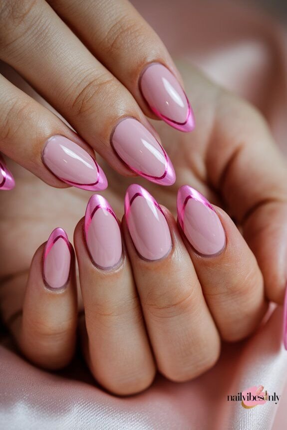 Chrome pink nails have that metallic, mirror-like effect that turns heads. Whether it’s soft rose chrome or bold magenta, this style is full of drama.