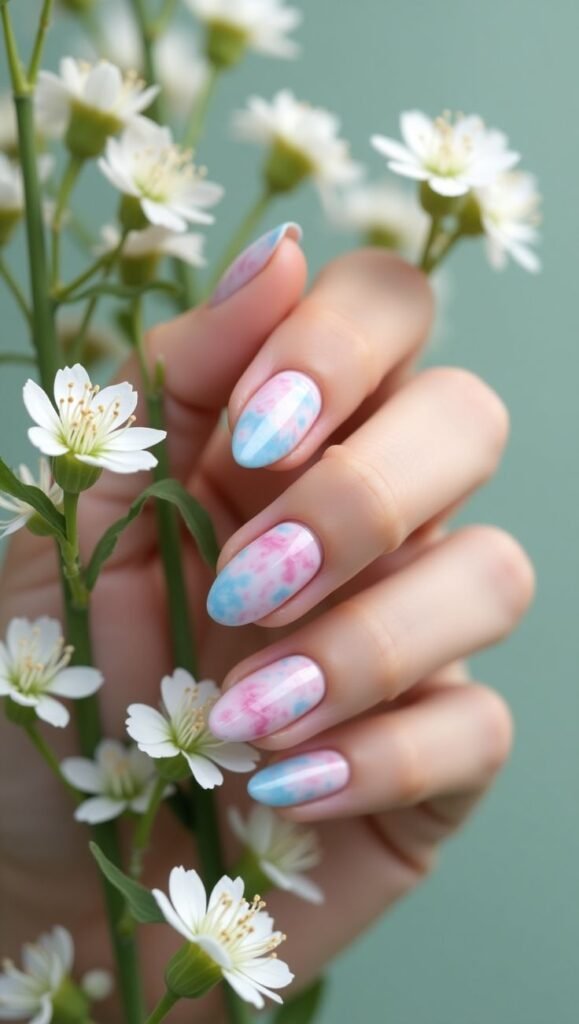 19. Pink Tie-Dye Nails