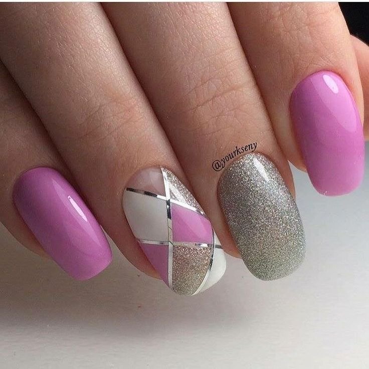 Hot pink nails with one or two glitter accent nails give you that glam factor. You can use silver, gold, or even pink glitter depending on your vibe.