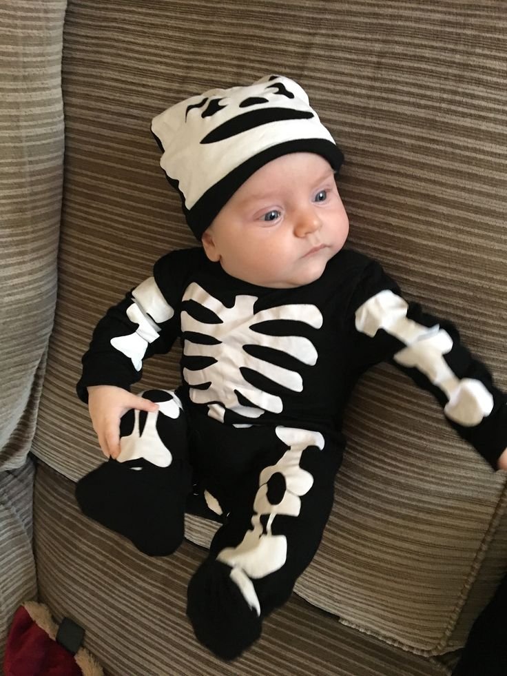 A baby skeleton costume with a onesie-style design is both hilarious and spooky. Add a pacifier, bonnet, or oversized bottle for full comedic effect. This idea works well if you’re into humorous, over-the-top costumes.
