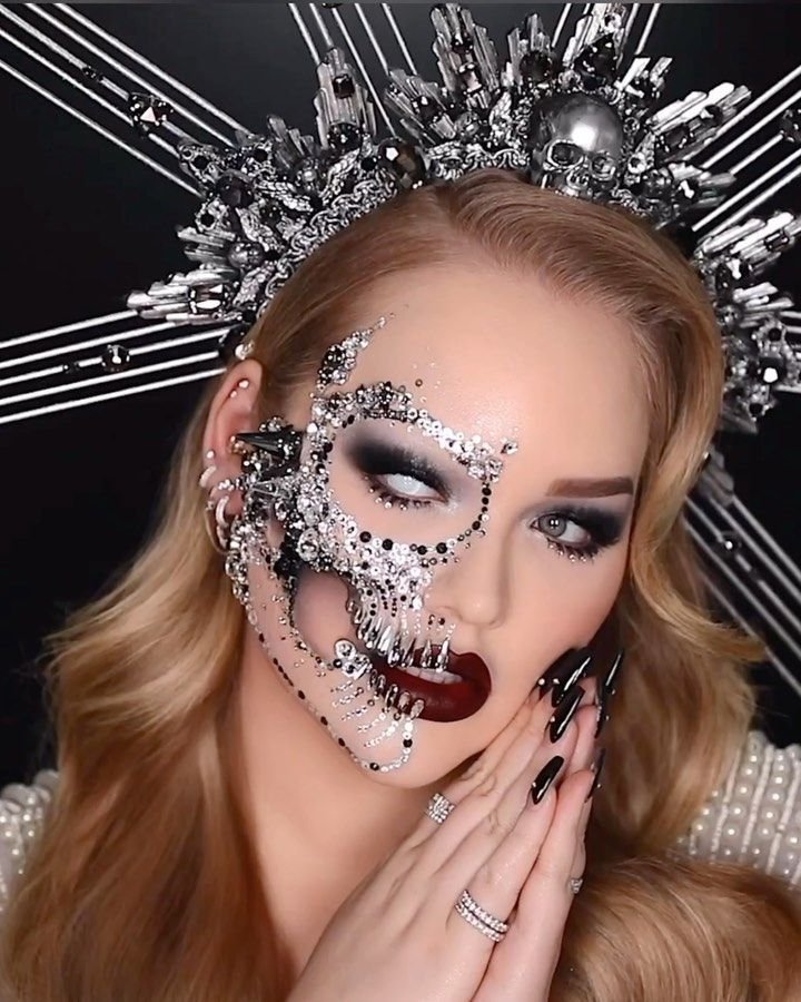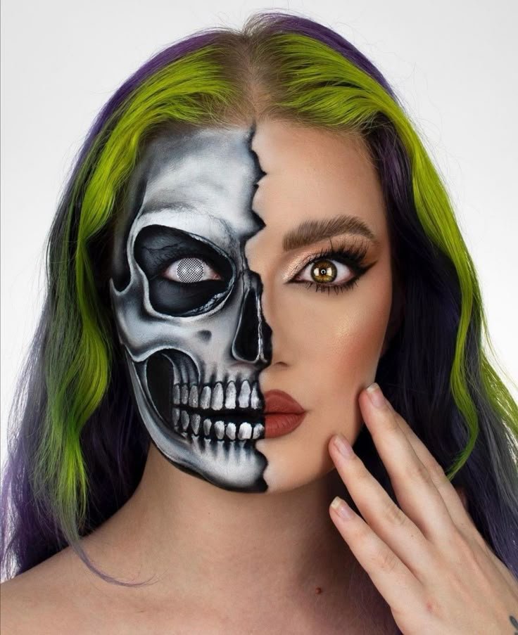 The half-skeleton look gives you the best of both worlds. You keep one side of your face glam, and turn the other into skeletal art. This contrast creates a powerful, stylish statement.