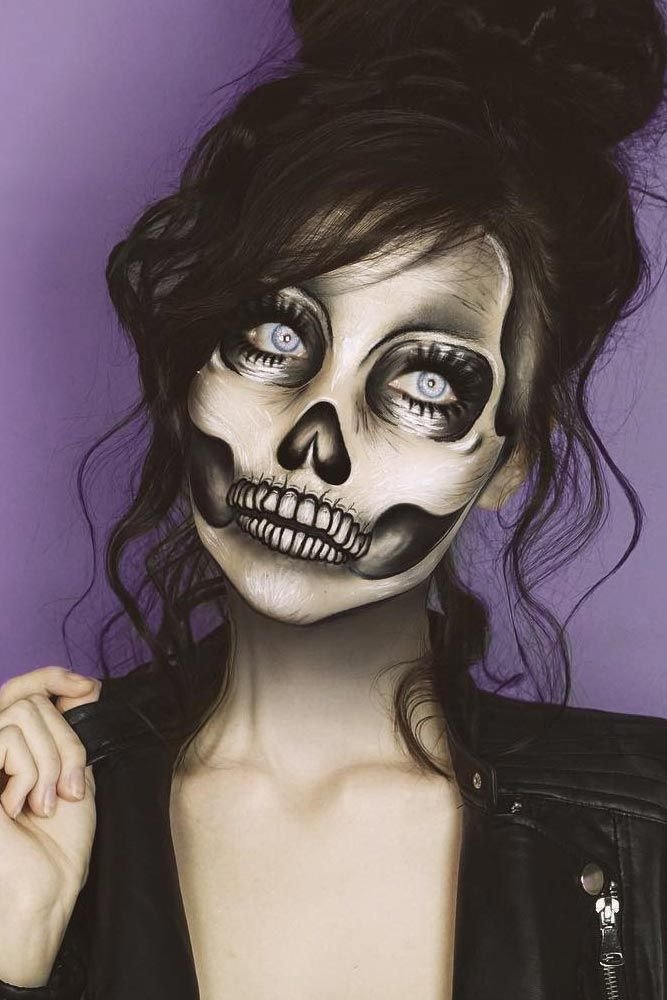2. Half-Face Skeleton Makeup