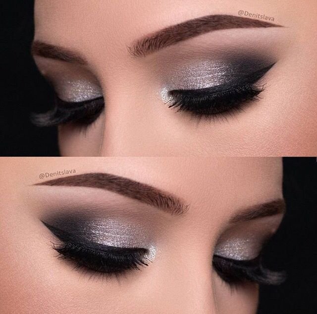 The classic black smokey eye is dramatic, bold, and always in fashion. It involves deep blacks blended out into soft greys with a touch of shimmer in the center.