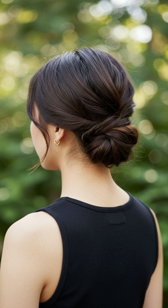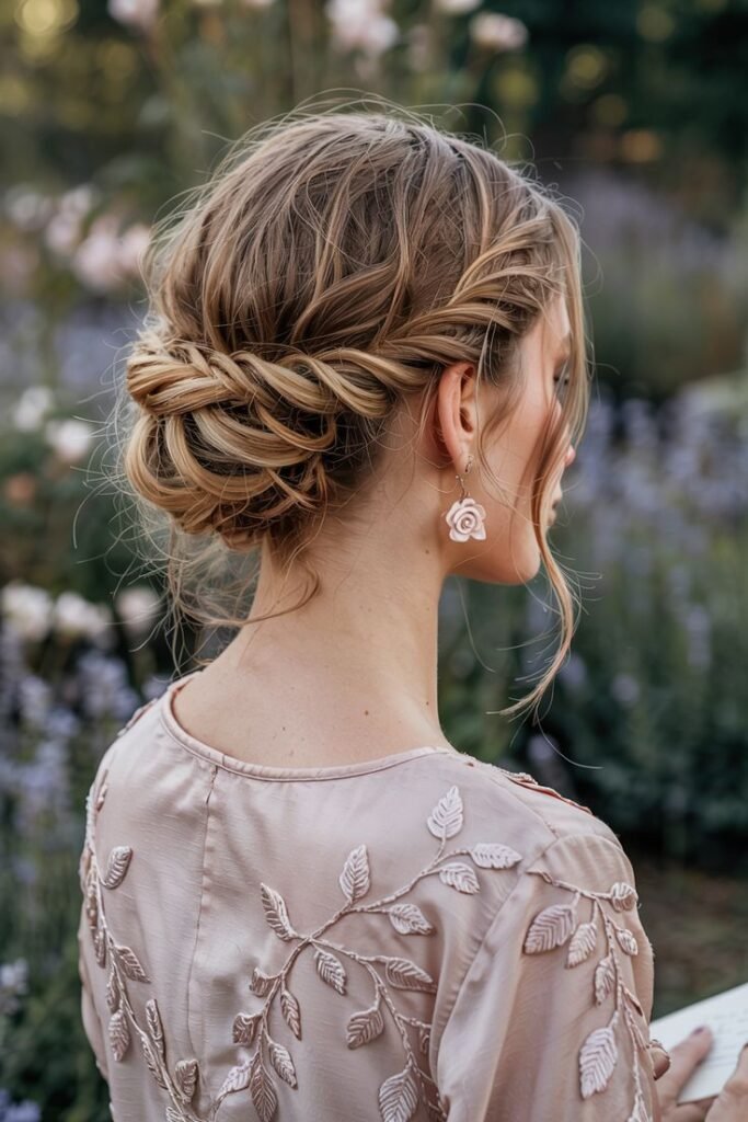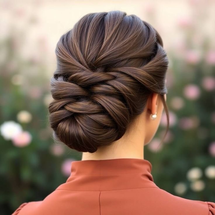 Twists add a touch of complexity without the need for complicated braids. A low bun with twisted sides is romantic, elegant, and surprisingly secure.