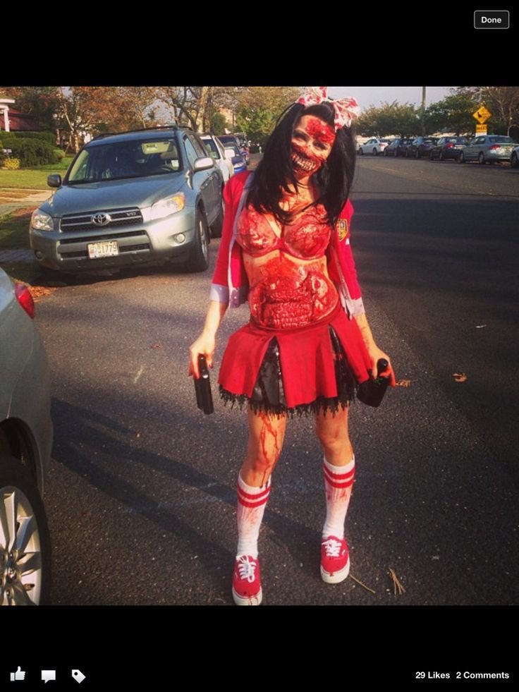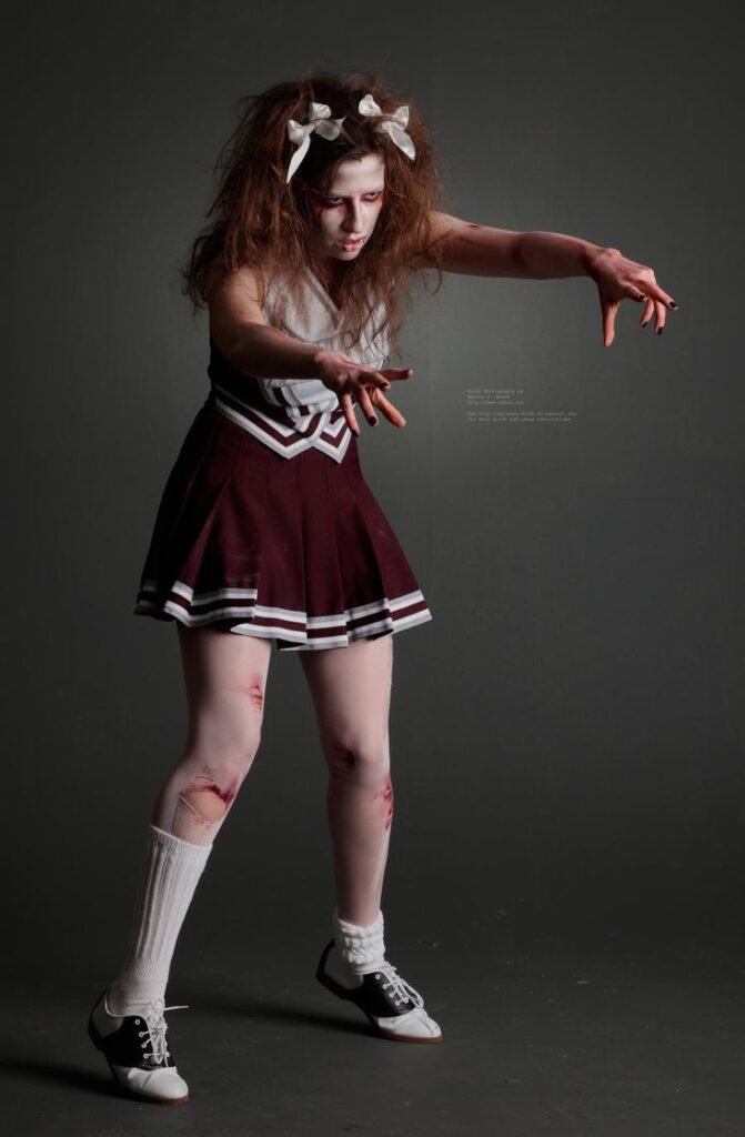 Transform a classic uniform into a post-apocalyptic nightmare. Start with an old cheerleader or sports uniform, then distress it with cuts, burns, and fake blood. Add zombie makeup—sunken eyes, pale lips, and maybe even a missing tooth.